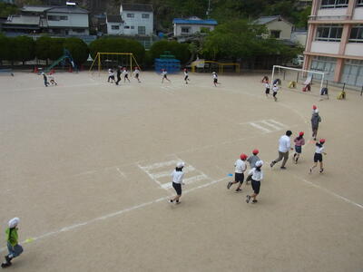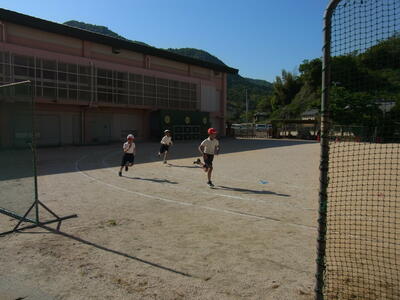 50m以上も投げる児童もいて、グラウンドの端から端までボールが飛んでいました。