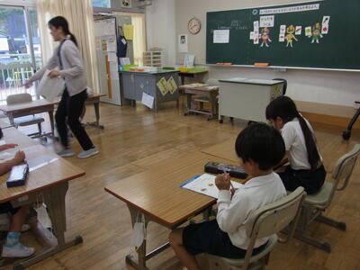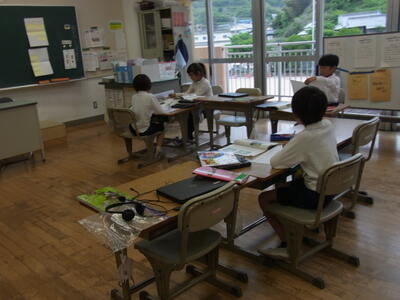 3・4年生は国語の説明文の学習で、3年生は段落ごとの読み取り、4年生は学習課題を