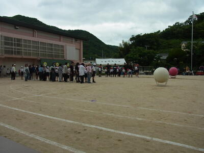 昨年度までのこども園・小学校・中学校の合同ではなく、こども園・小学校合同と