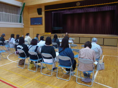 その後、体育館でPTA総会を開き、PTA活動や予算について承認いただきました。