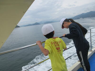 今年度の遠足は、全校で船(観光船)に乗って江田島一周の旅を行いました。