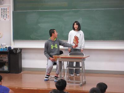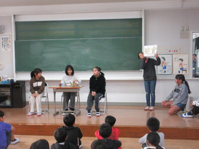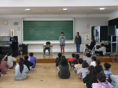 1月27日 みたか発表会(1月) 投稿: 編集長 (18:09) 今月の「みたか発表会」は、保健・体育委員会による創作劇「ご飯はちゃんと食べんといけんよ」でした。 委員会の児童は、台本を考えたり、小道具を作ったりし、休み時間に練習を重ね、全校児童に 朝ごはんの大切さや好き嫌いをしないことを伝えてくれました。 Tweet -