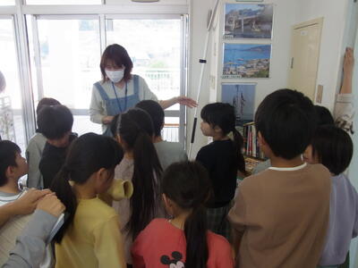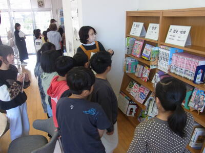 学校図書館スクール・サポート・スタッフによる図書室内のガイドツアー