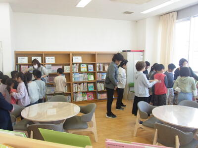 全校児童に図書館活用のオリエンテーションを行いました。