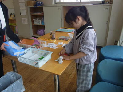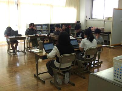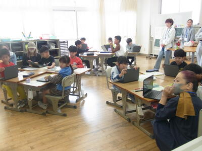 5・6年生は、国語で漢字の部首や読みなどを使ってクイズを作って出し合い、楽しく学習をしていました。
