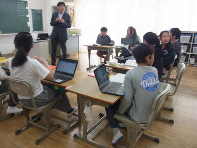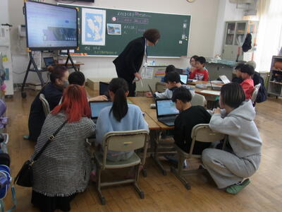 どちらもタブレットを使って地図を見たり、考えを共有したりししながら学習に生かしていました。
